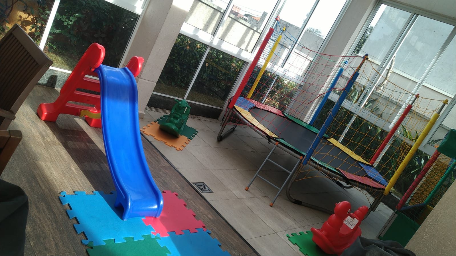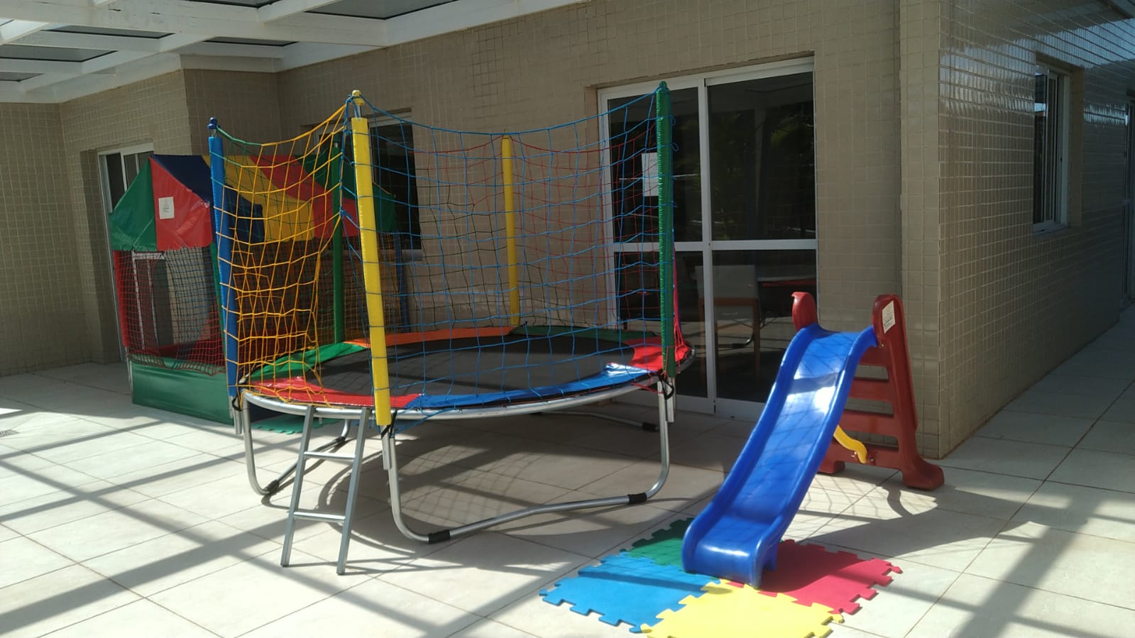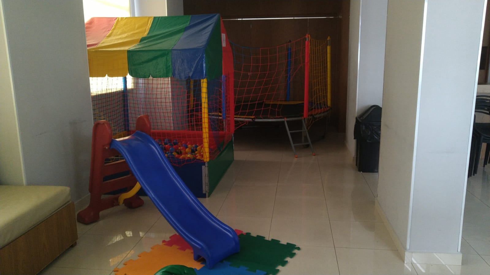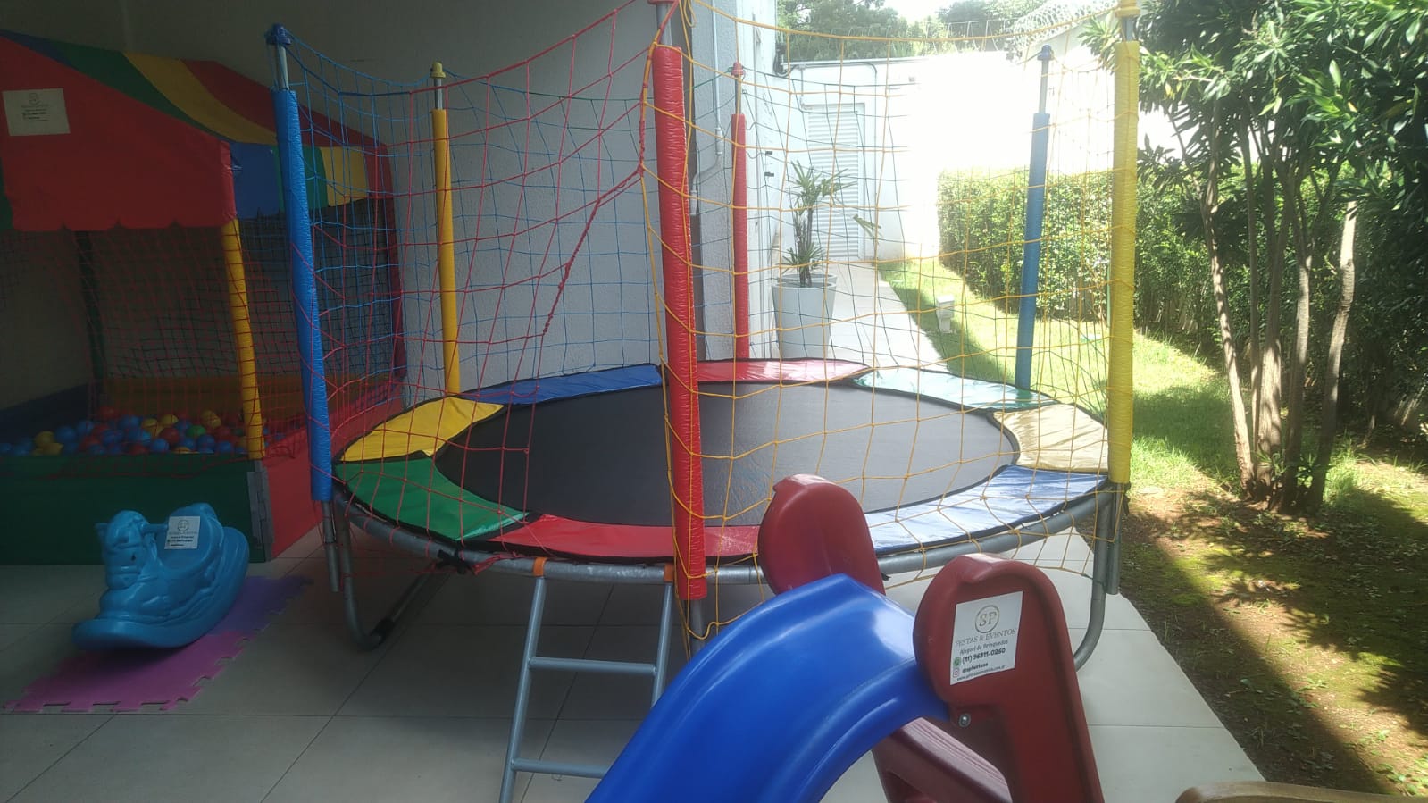 Piscina de Bolinha 1,50 x 1,50 + Cama Elástica 2,40 x 2,40+ Pula Pula com Escorregador