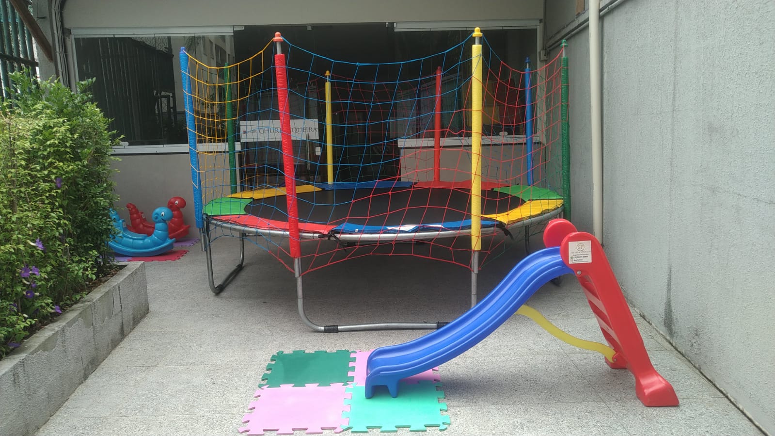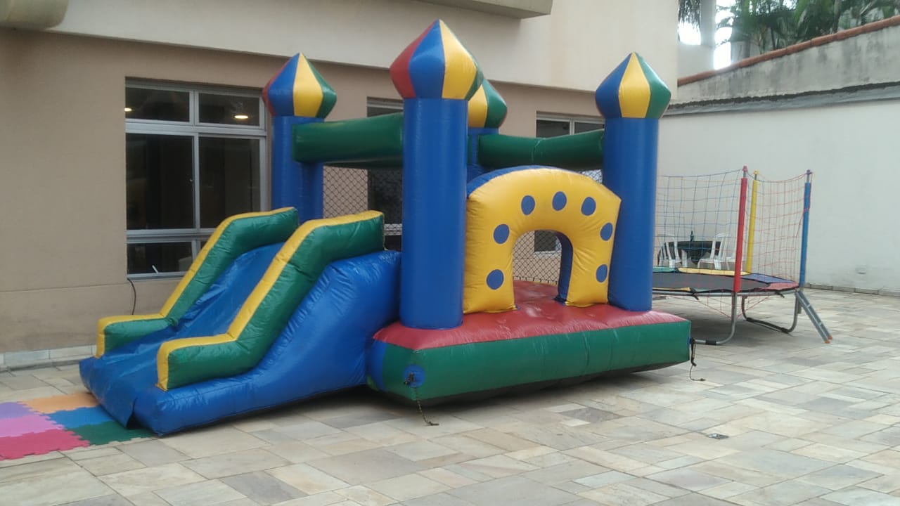 Pula Pula Inflável 2,80 x 2,80 + 1,50 de escorregador + Cama elástica 2,40 x 2,40