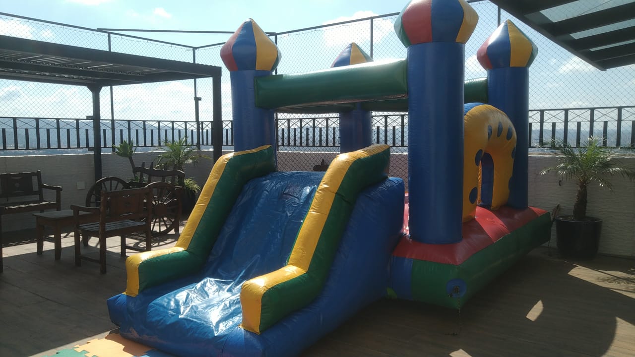 Pula Pula Inflável 2,80 x 2,80 + Mini Tobogã 3m Al 3,30 x 2,30